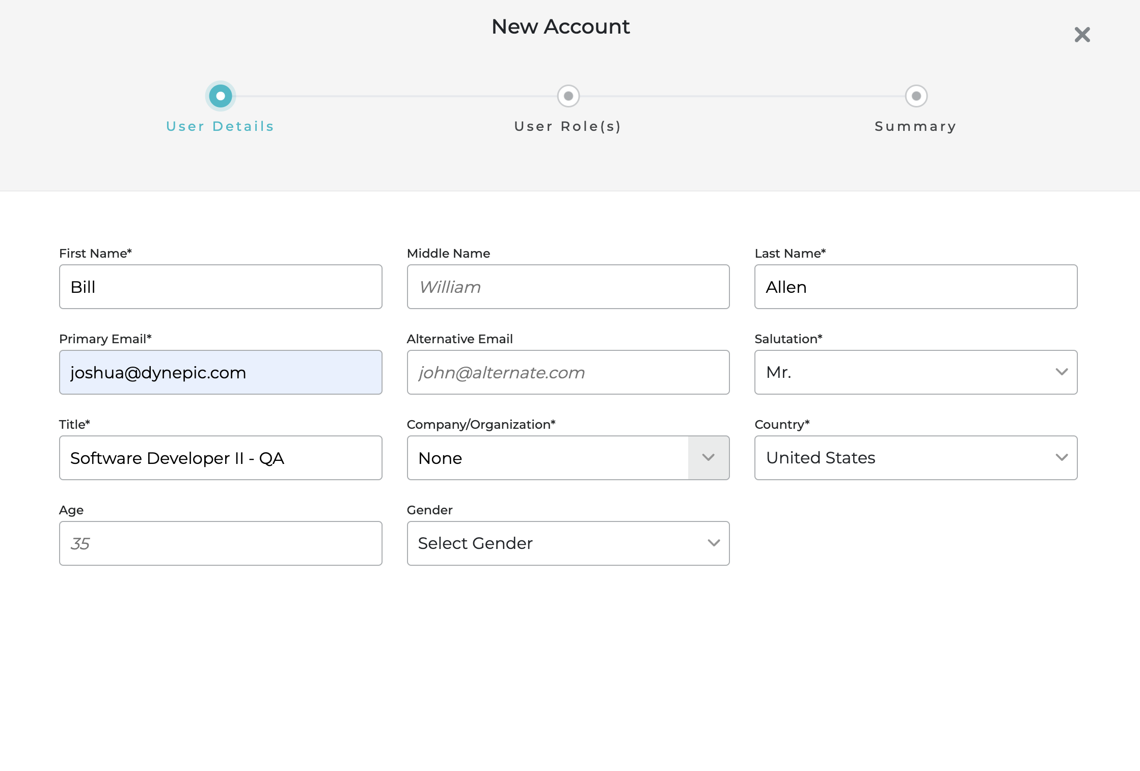 **CLICK** the **+ Add New User** button to begin the "create new user flow".