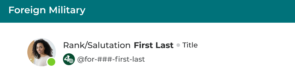 A Foreign Government Civilian is a user that is employed by a foreign government in a non-military and non-diplomatic role.