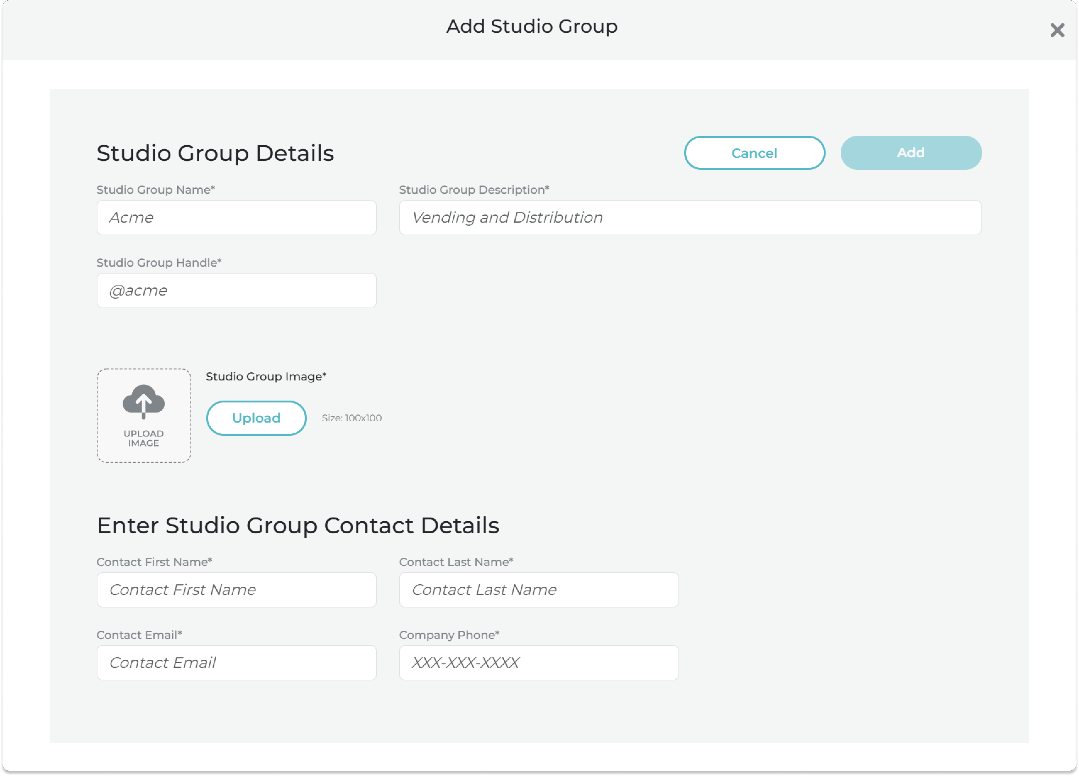 The Add Studio Group Modal will open