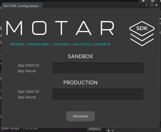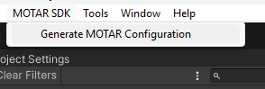 * In your Unity project, **Click** MOTAR SDK&#x20;
